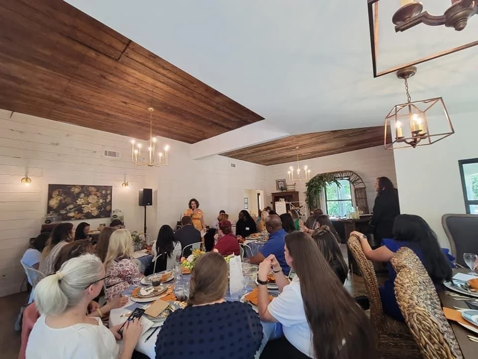 Taylor de la Fuente addresses the North Dallas Wedding Vendor Association at the June 2021 luncheon.